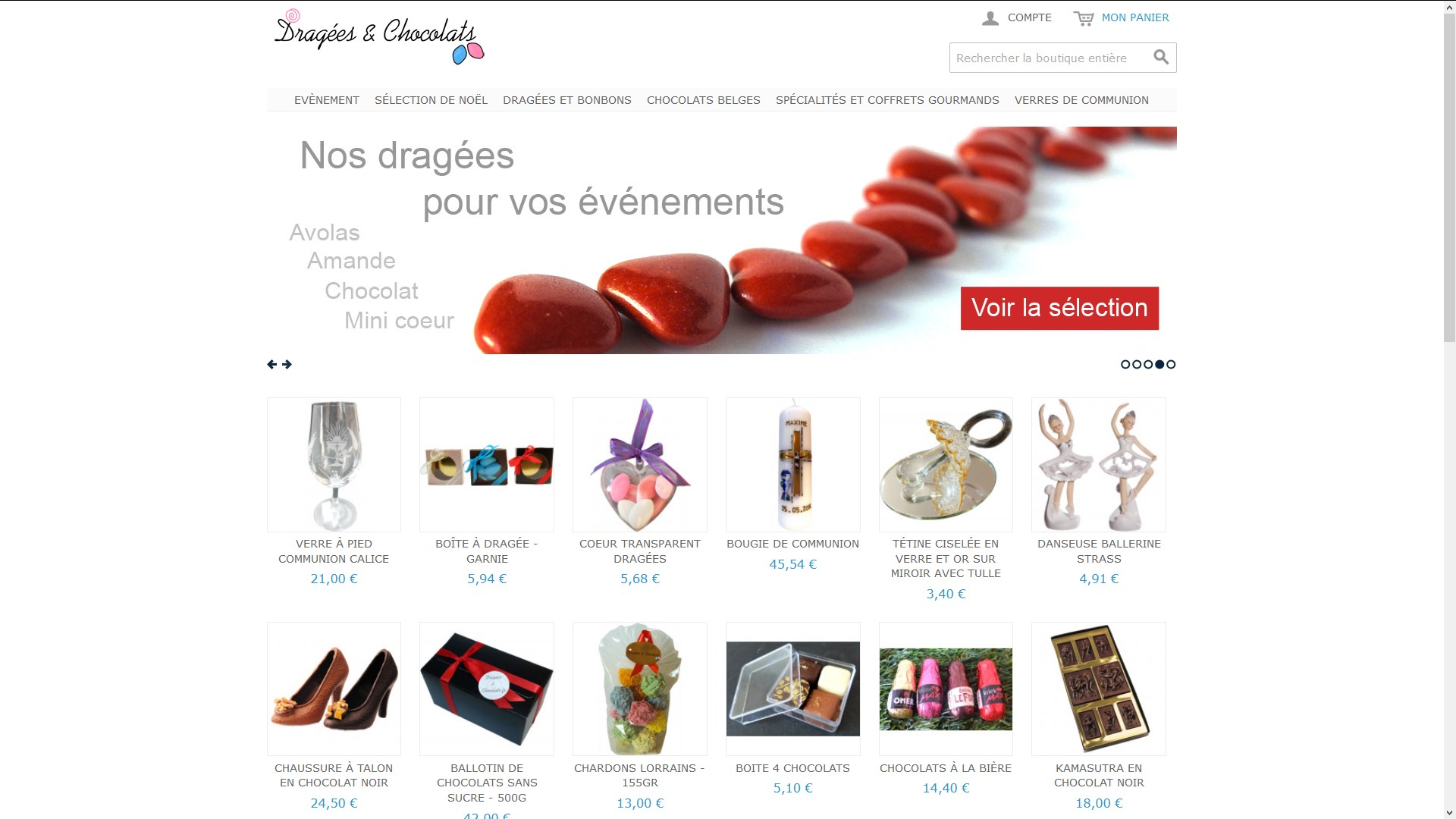 Dragées et Chocolats proposent sur leur boutique en ligne des produits culinaires pour les Baptême, Communion, Mariage, Anniversaires, Noces et pour toutes les occasions qui s'y prêtent . Les produits phares de la boutique en ligne sont produits personnalisables, des bonbons, des chocolats belges Beugnies et des dragées que vous pouvez modifier à votre guise pour convenir au mieux à une occasion