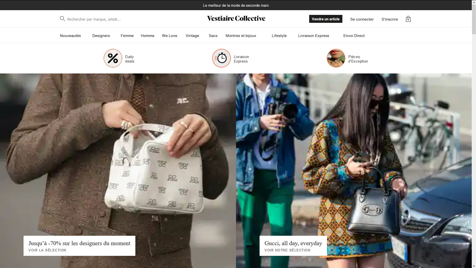 Sur VestiaireCollective.com vous retrouverez tout le meilleur de la mode d'occasion à 30 à 70% de réduction sur le prix de vente original. Avec VestiaireCollective achetez, vendez et partagez ! 100 % des articles sont conservés et triés manuellement... Si vous aimez la mode et le économie c'est le site de vente parfait pour vous, rien de tel que des vêtements d'occasions de haute qualité.